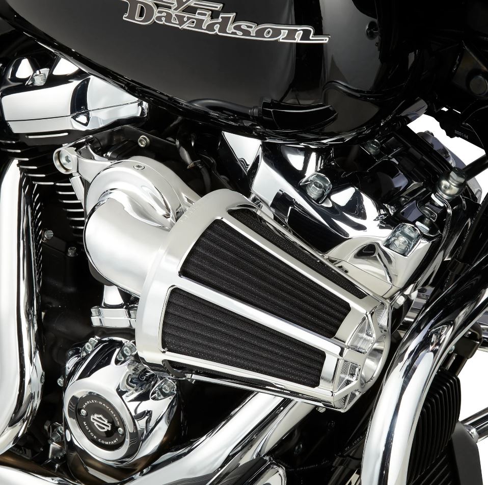The Beveled Monster Sucker® is a 90° performance air cleaner that features a massive forward-facing filter design and our patented hidden breather backing technology for a reliable intake that enhances the performance of the engine. The Beveled air filter cover is forged & CNC machined from billet aluminum