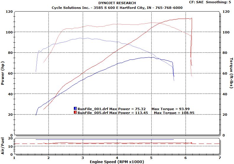 Our dyno shows huge gains on the M8 engines when using our quality products. This dyno graph is for our 2017 Road King. We installed the D&D Billet Cat exhaust system, a Thundermax auto tune module, CSR air intake, 58mm CSR throttle body and a T-man 216 Cam chest upgrade. This bike gained 38 horsepower which is incredible!