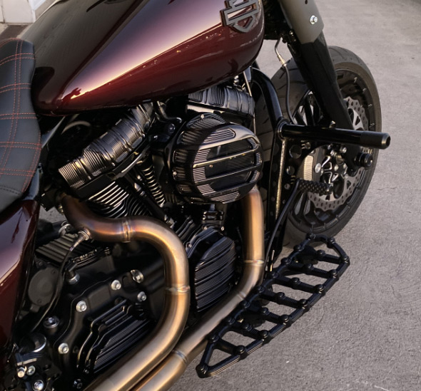 • Air cleaner cover is forged and CNC machined into an angled shape for excellent leg room