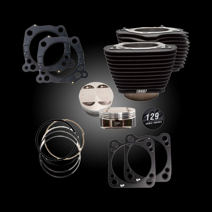 The biggest Big Bore possible with a drop-in kit! This S&S cylinder and piston kits takes your 107″ M8 to 129″ and the 114″ to 132″.