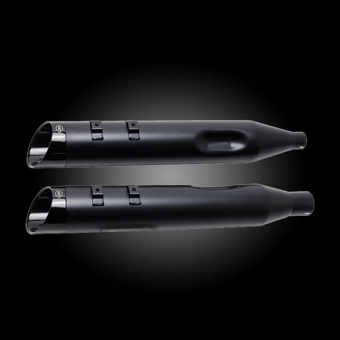 Mk45 Slip-On Mufflers are the result of decades of riding, racing and tuning. Combining both a stainless steel perforated core baffle with Race-TEX cartridge packing, they create a deep rumble and improved horsepower and torque, all while adding a unique look with styled aluminum end caps.