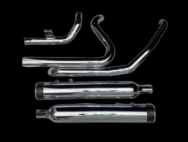 Looking to break away from the restrictions of a factory head pipe system? Want to be able to take full advantage of your aftermarket slip-ons? If so then these are the perfect head pipes for you. These 2-into-2 interconnected head pipes are built out of 1 ¾ inch 16 gauge mandrel bent, tubing and feature 220° full coverage heat shields. Our hidden inter-connect design maximizes top end horse power and low end torque when compared to your typical true dual systems while at the same time helping to balance flow and improve sound. Our crossover pipe uses an oval shaped design to maintain cross sectional area for flow while maximizing clearance for the best of both worlds. Includes all mounting hardware and new port gaskets. Mufflers not included.